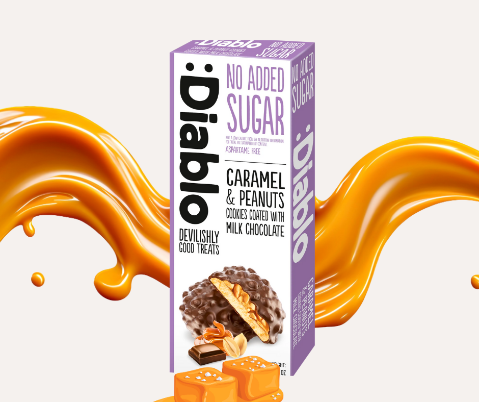 - Chocolat au lait sans sucres ajoutés 35 % [édulcorant : maltitols ; lait entier en poudre, beurre de cacao, pâte de cacao, lactosérum en poudre (de lait), émulsifiant : lécithines], caramel sans sucres ajoutés 31 % [édulcorants : sirop de maltitol, maltitols ; huile de coco, lactosérum en poudre (de lait), lait écrémé en poudre, sel, arômes], cacahuète 13 %, farine de blé 13 %, édulcorant : maltitols ; 4 %, matières grasses végétales (huile de coco, huile de colza) 3,7 %, poudre à lever : carbonates de sodium ; 0,13 %, arôme 0,1 %, sel 0,07 %.