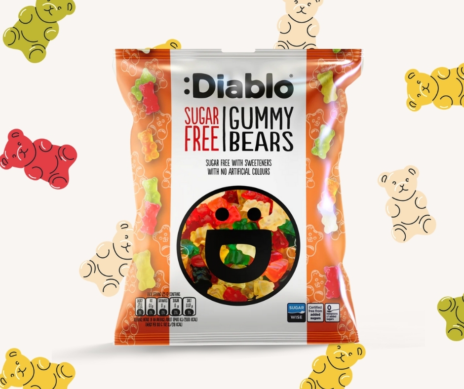• Maltitol, eau, isomalt, gélatine de vache, acidifiant : acide citrique, arôme, agent d’enrobage : huile de coco, cire de carnauba, cire d’abeille, édulcorant : glycolites de stéviol, colorants : E163, E100, E141.