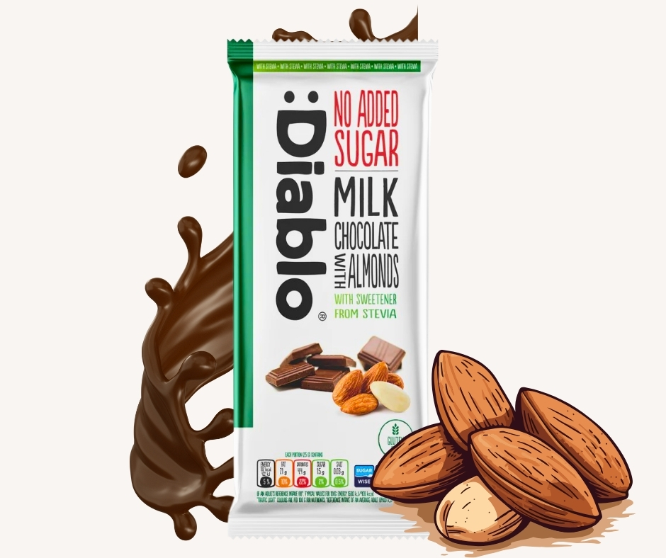 - Édulcorants (maltitol et glycosides de stéviol (0,02 %)), beurre de cacao, lait entier en poudre, amandes (12 %), pâte de cacao, beurre, émulsifiant (lécithine de soja) et arôme. Cacao : 30 % minimum. Contient des sucres naturellement présents. Sans gluten. Une consommation excessive peut avoir des effets laxatifs. Pour les allergènes, voir les ingrédients en gras. Peut contenir d’autres fruits à coque.