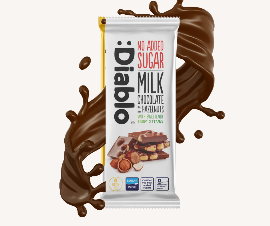 - Édulcorants (maltitol et glycosides de stéviol (0,02 %)), beurre de cacao, lait entier en poudre, noisettes (12 %), pâte de cacao, beurre, émulsifiant (lécithine de soja) et arôme. Cacao : 30 % minimum. Contient des sucres naturellement présents. Une consommation excessive peut avoir des effets laxatifs.